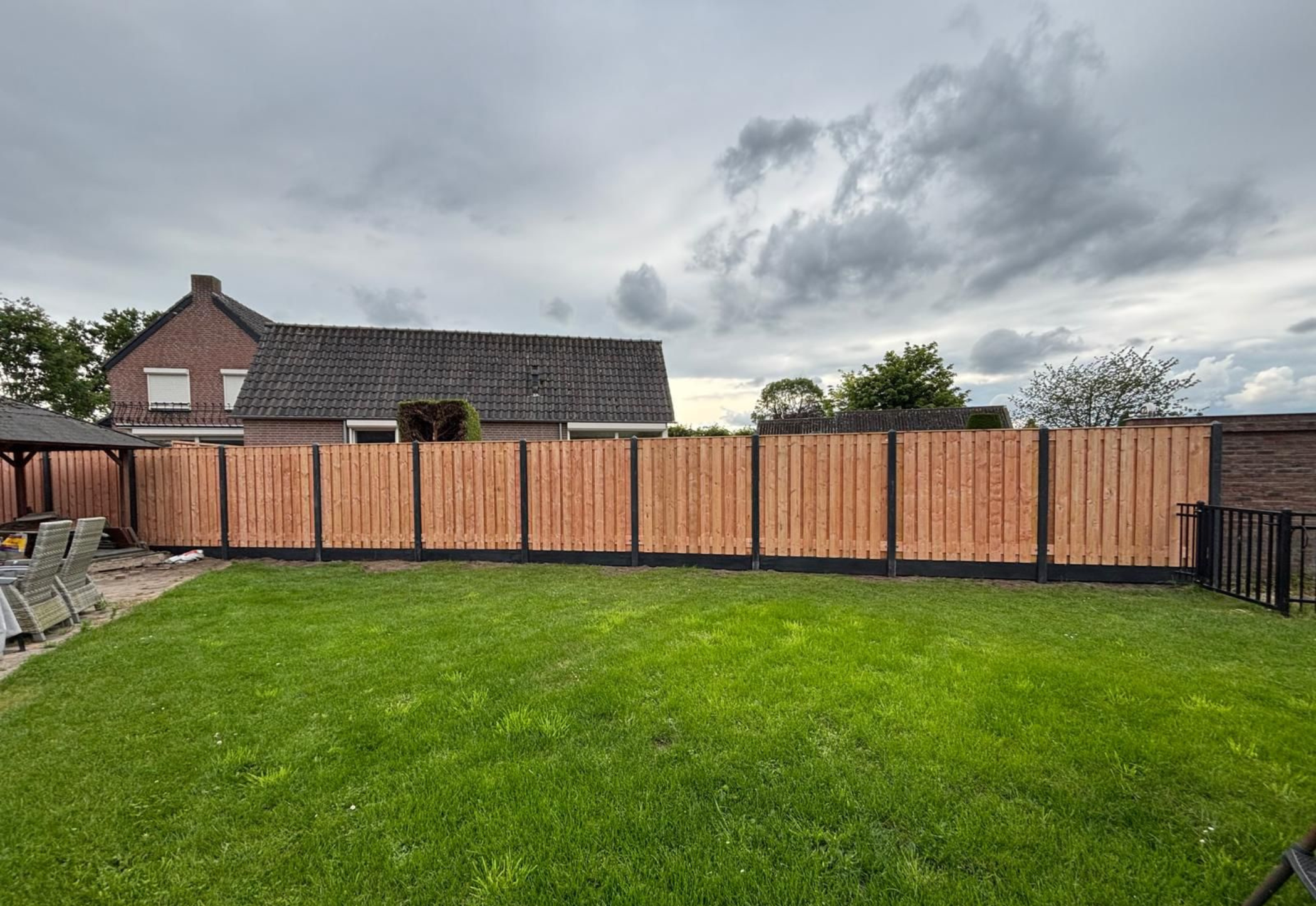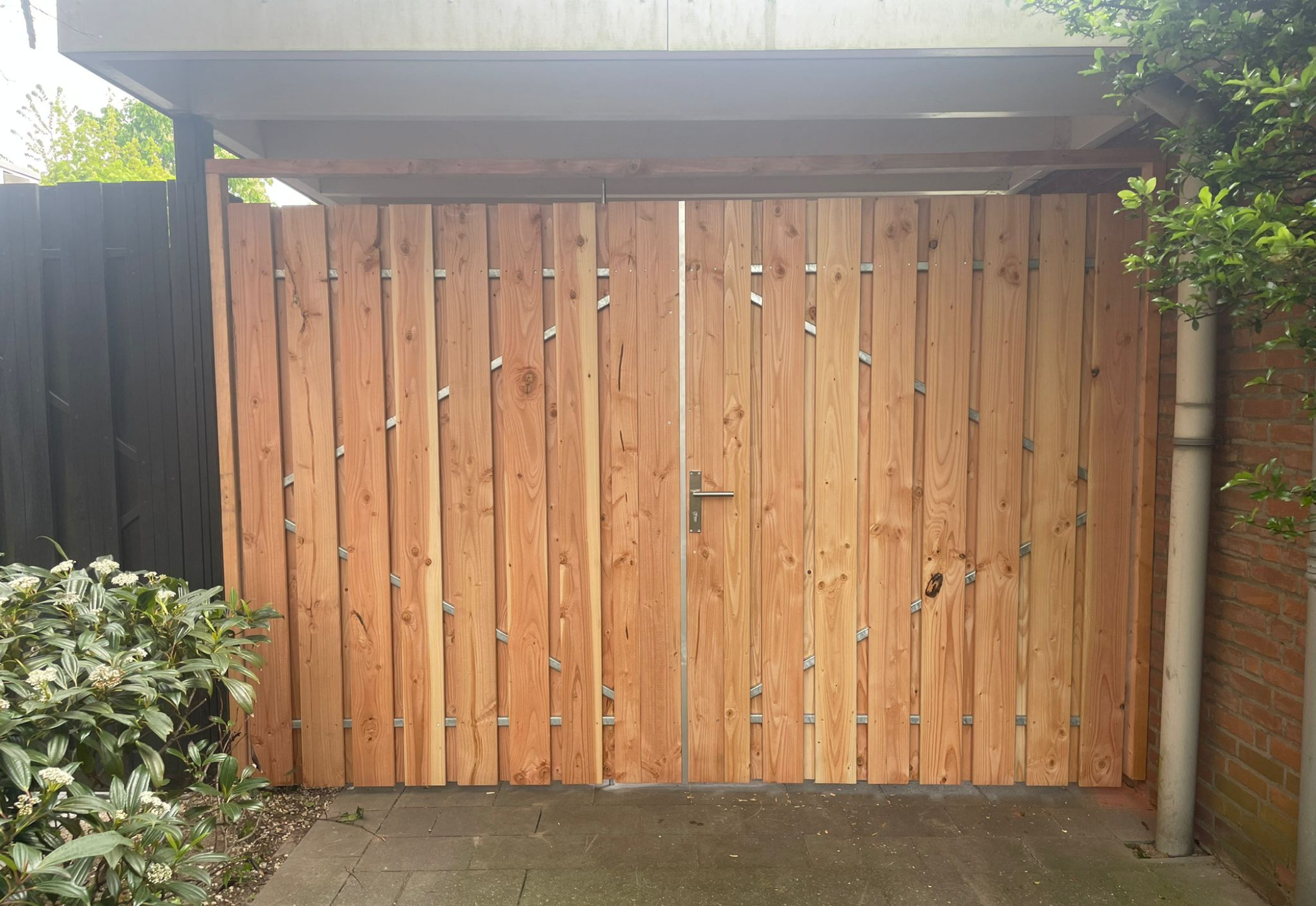 Douglas hout is van nature sterk en bestand tegen weersinvloeden en insecten. In combinatie met betonnen palen en onderplaten ontstaat een stabiele constructie die jarenlang meegaat met minimaal onderhoud.