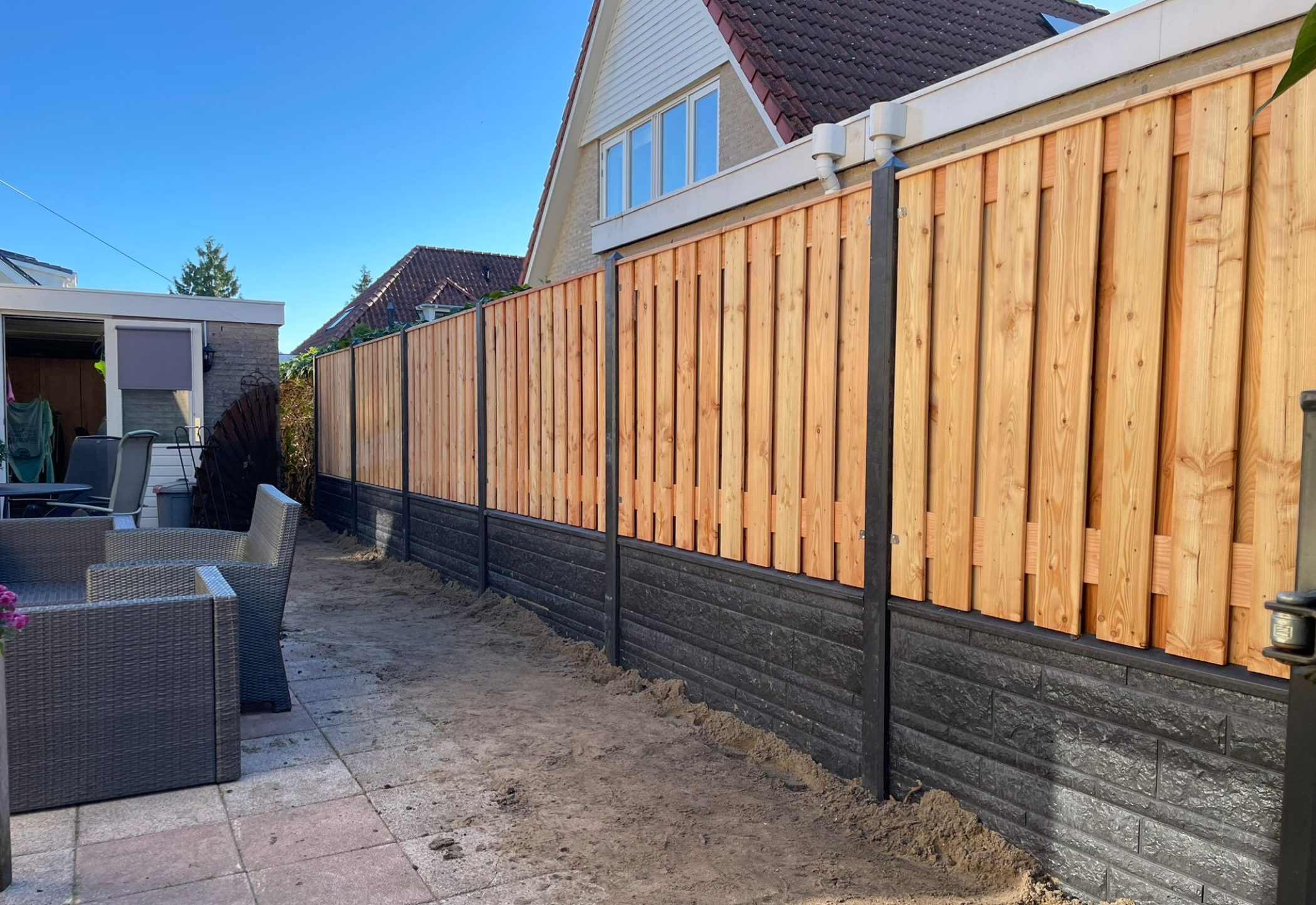 De Douglas Hout-Beton Schutting combineert het warme karakter van Douglas hout met de solide stevigheid van beton. Deze schutting is een populaire keuze voor wie zoekt naar een duurzame, robuuste en stijlvolle erfafscheiding met een natuurlijke uitstraling.