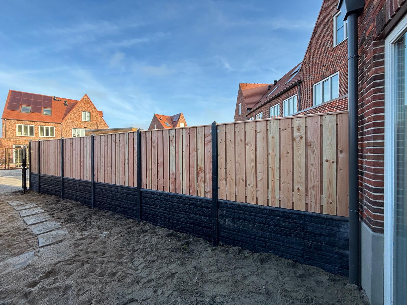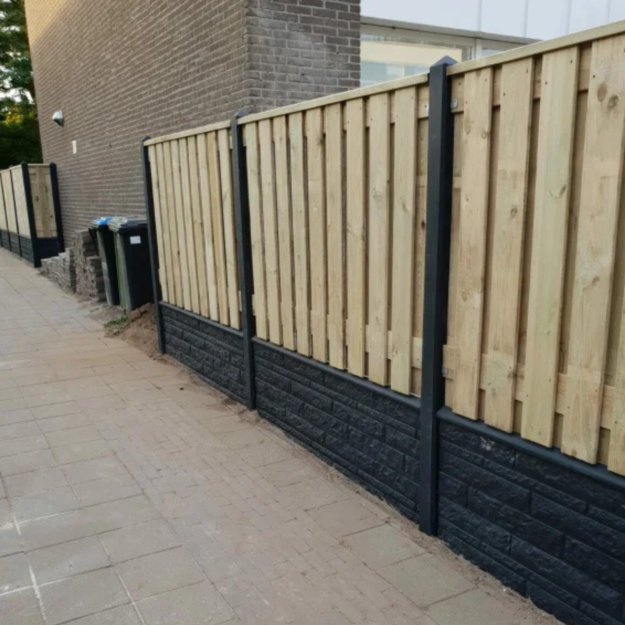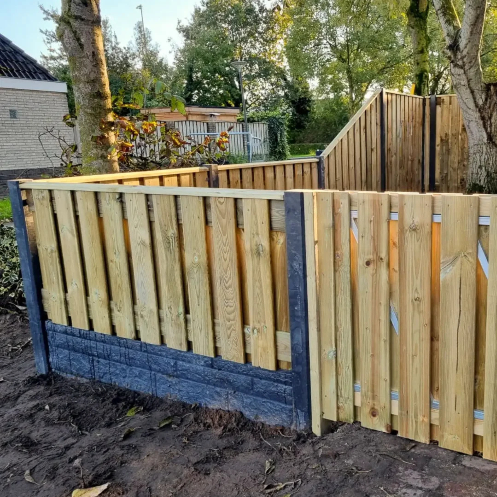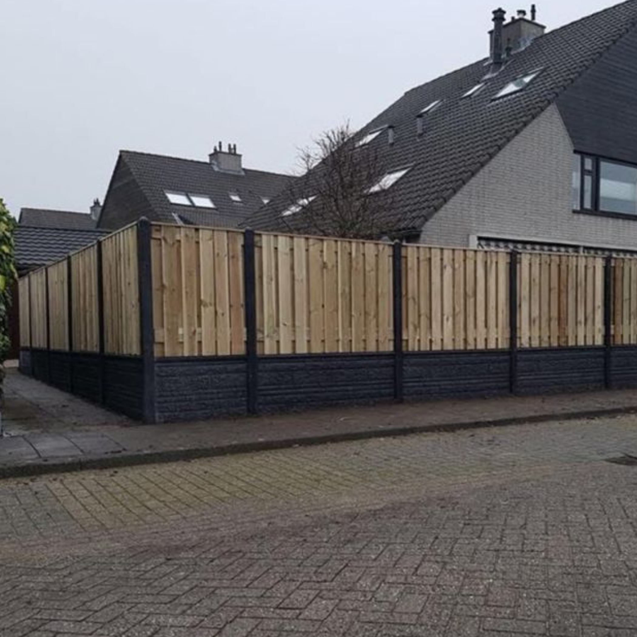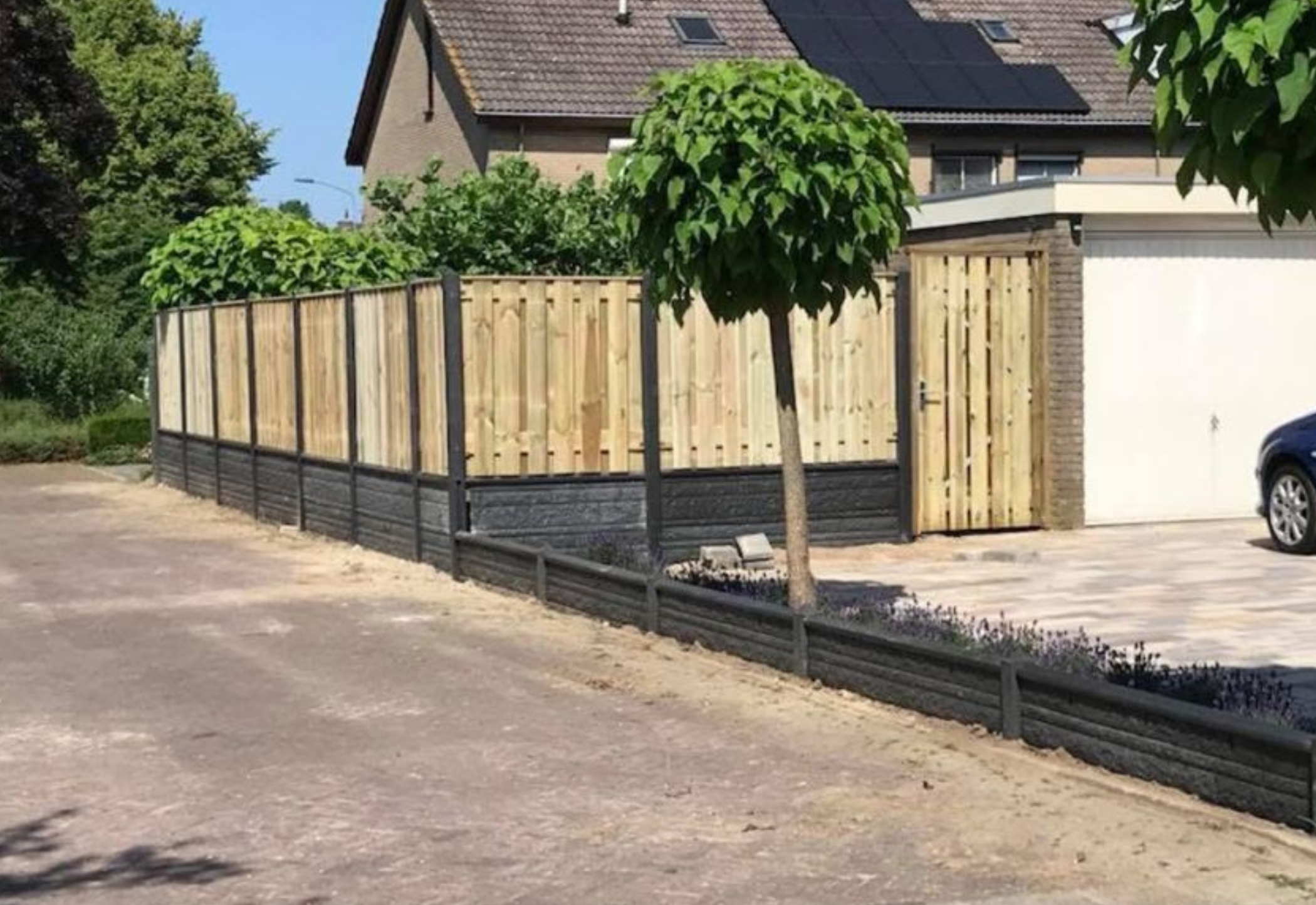 De betonplaten zijn volledig weerbestendig en vrijwel onderhoudsarm. Het geïmpregneerde Grenen hout is bestand tegen vocht, schimmel en insecten, waardoor de schutting jarenlang mooi en functioneel blijft.