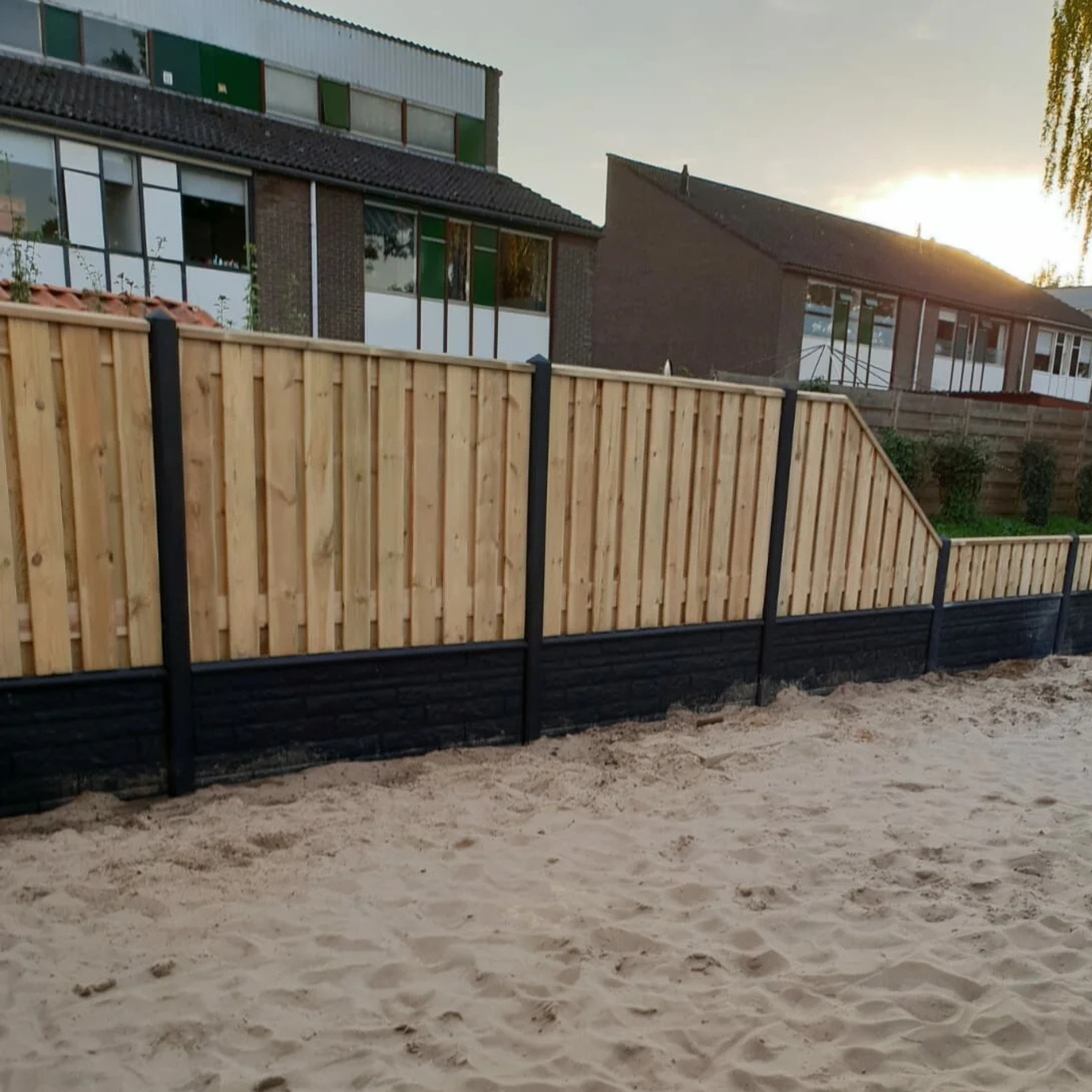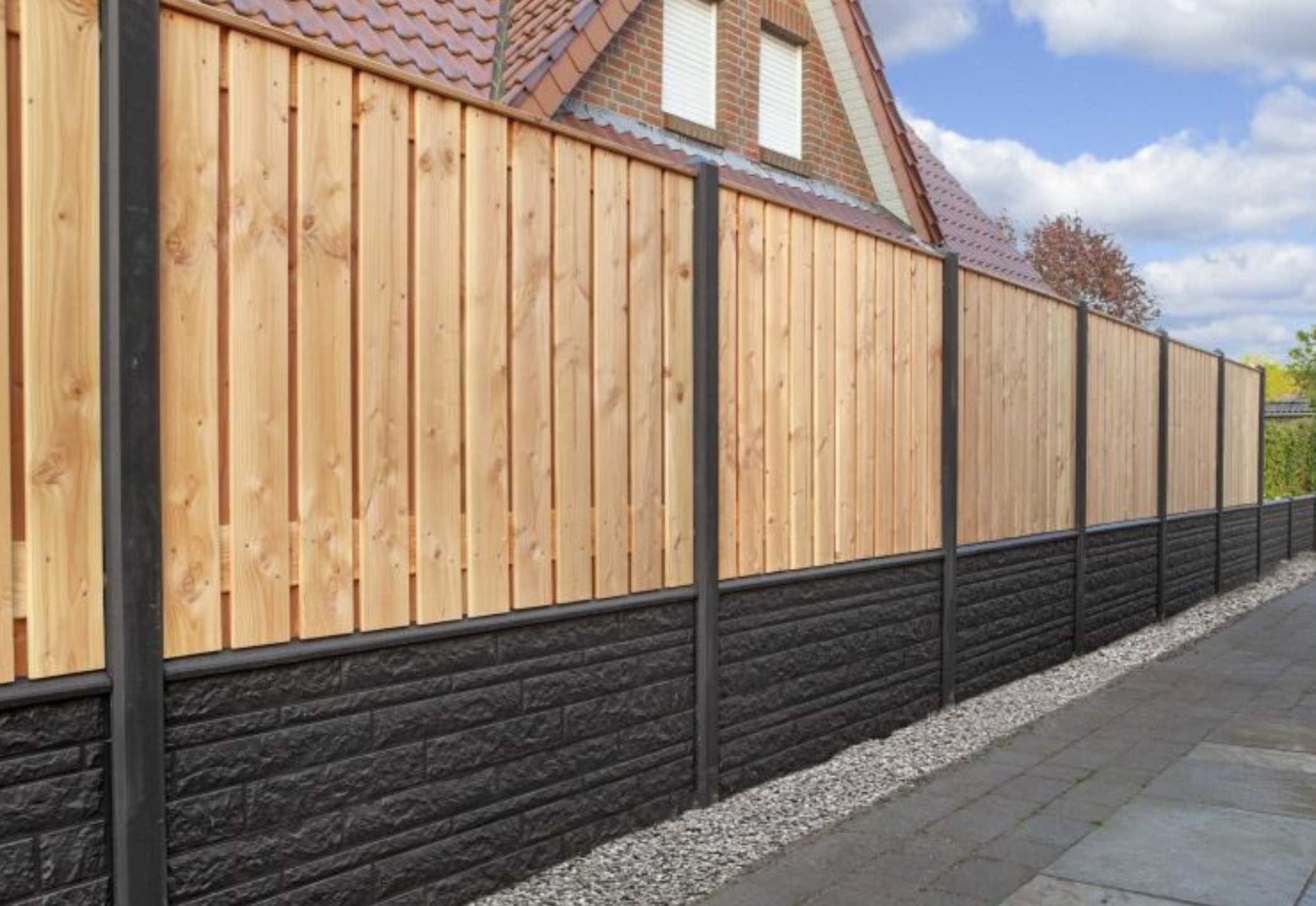 De schermen zijn leverbaar in verschillende planksuitvoeringen en kunnen zowel horizontaal als verticaal worden gemonteerd. Betonpalen en onderplaten zijn beschikbaar in grijs of antraciet, waardoor de schutting volledig aansluit op de gewenste stijl.