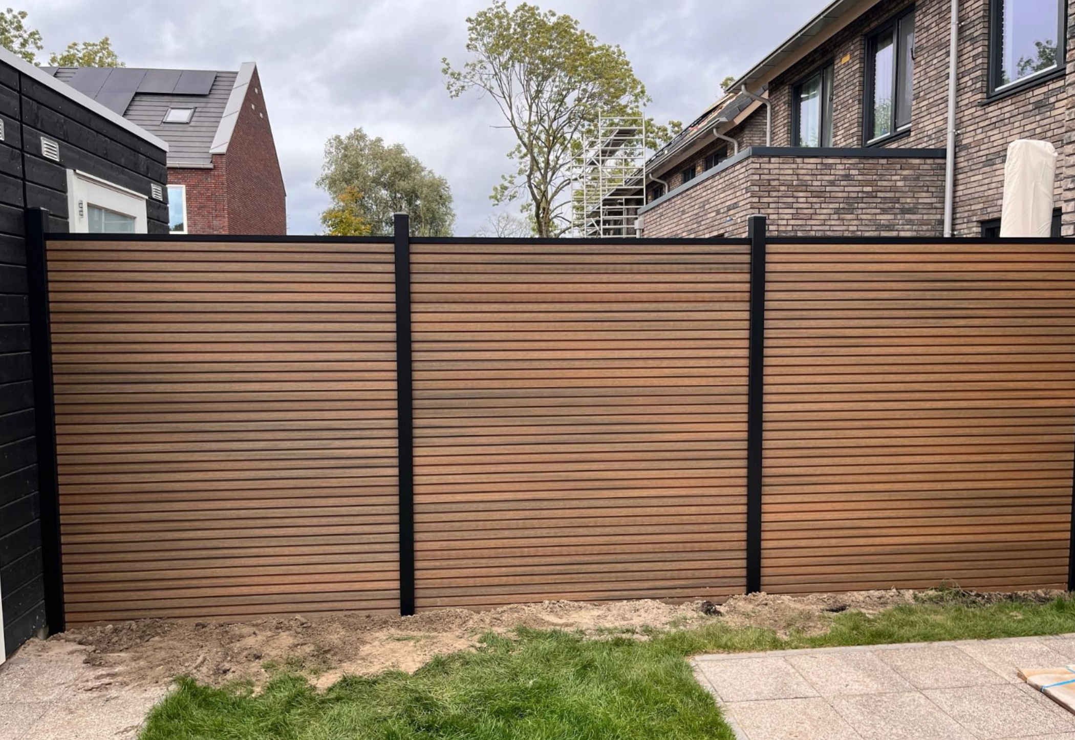 Het rhombus-profiel zorgt voor een modern, horizontaal lijnenspel en geeft een luxe uitstraling die perfect past bij eigentijdse tuinontwerpen.